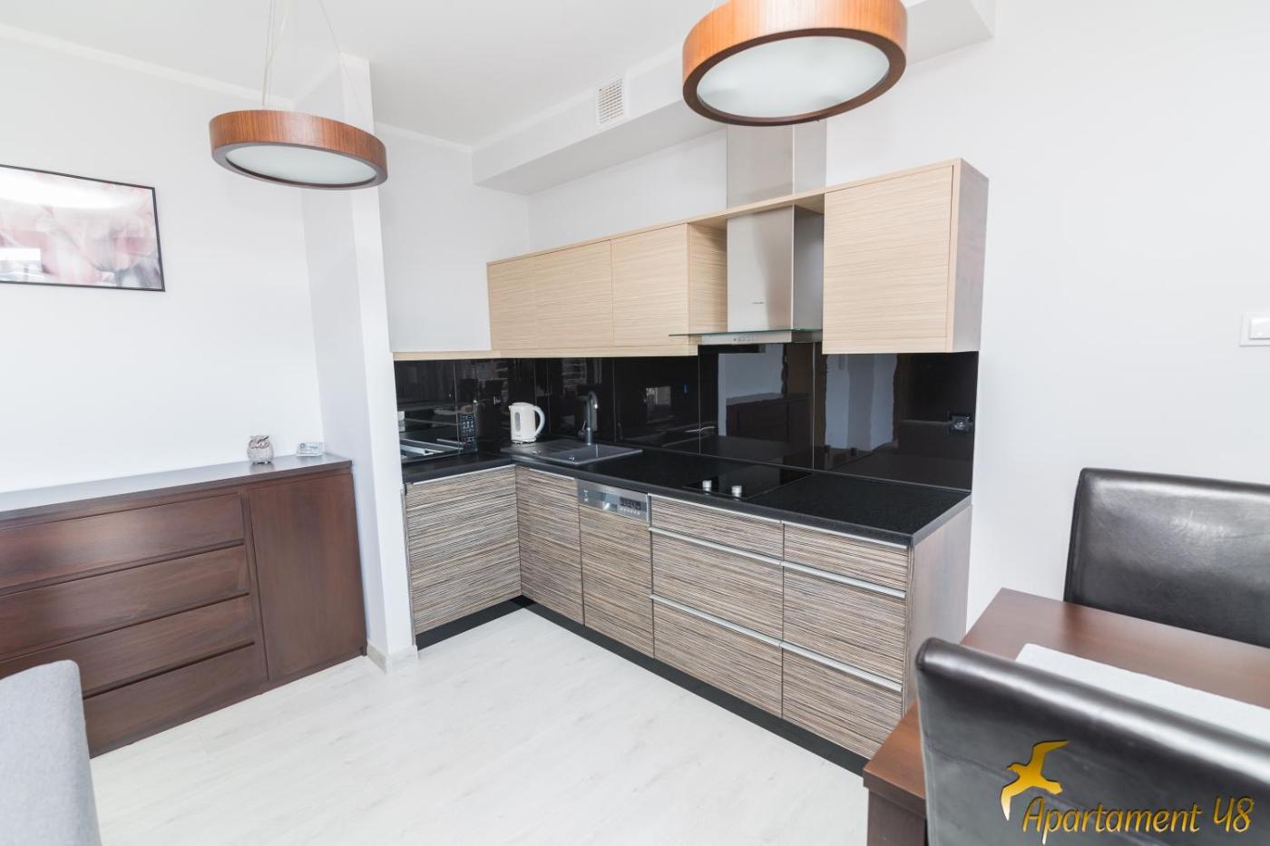 Apartament. Featuring a private entrance, this apartment comprises 1 living room, 1 separate bedroom and 1 bathroom with a bath and a shower. Meals can be prepared in the well-fitted kitchen, which comes with a stovetop, a refrigerator, a dishwasher and kitchenware. Boasting a terrace with garden views, this apartment also provides a washing machine and a flat-screen TV with streaming services. The unit offers 3 beds. Apartament - 7 osobowy. Powierzchnia pokoju ok.: 50 mkw.
