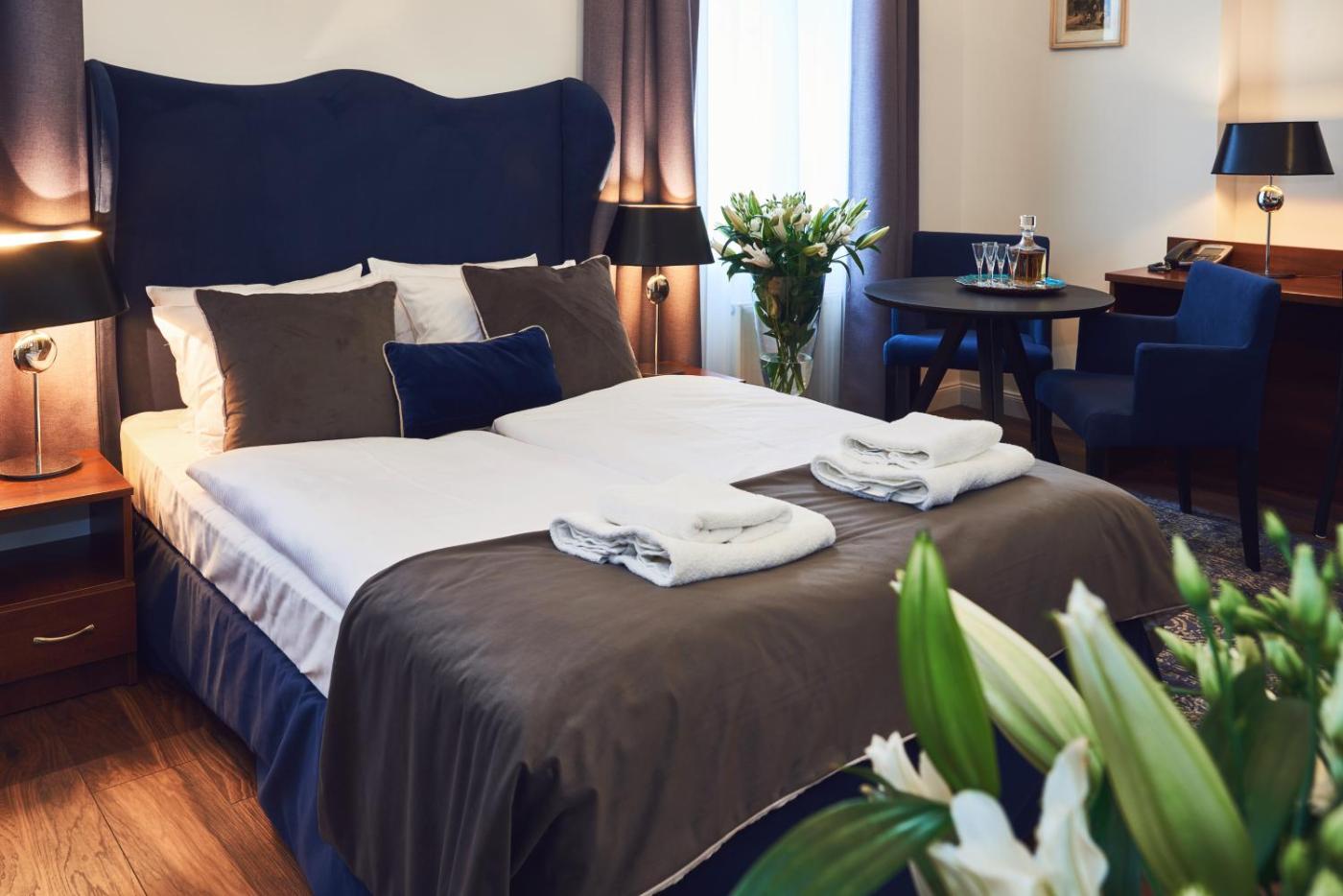 Pokój z 2 łóżkami pojedynczymi i prywatną łazienką. Offering free toiletries, this twin room includes a private bathroom with a walk-in shower and a hairdryer. The twin room has parquet floors and offers a tea and coffee maker, a wardrobe and city views. The unit has 2 beds. Pokój z 2 łóżkami pojedynczymi - 2 osobowy. Powierzchnia pokoju ok.: 14 mkw. ;