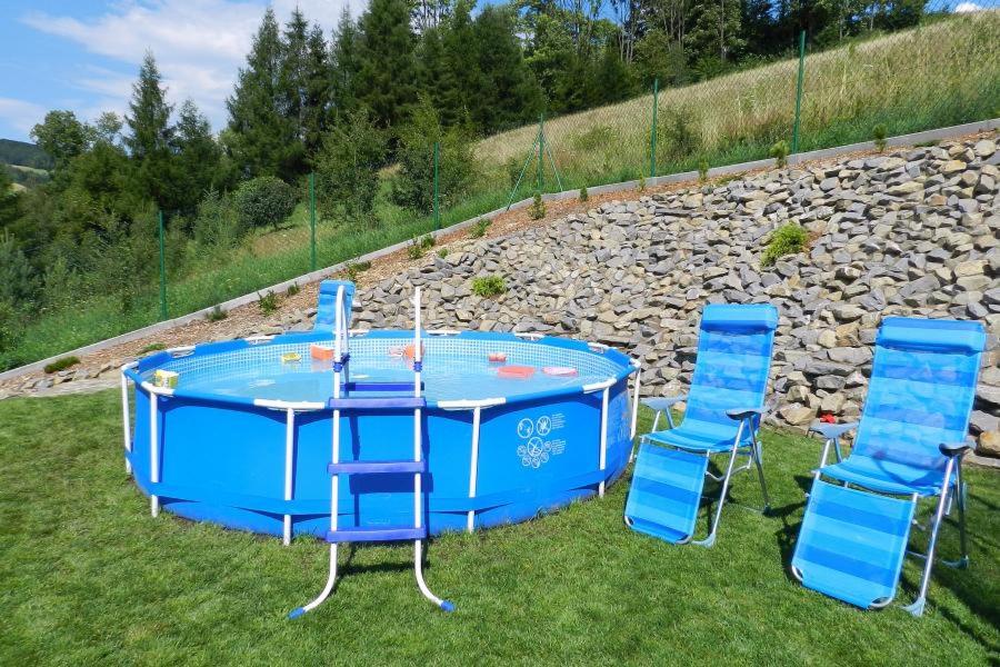 Domek z 3 sypialniami. Guests will have a special experience as this chalet provides a fireplace. Boasting a private entrance, this spacious chalet also includes 1 living room, 3 separate bedrooms and 2 bathrooms with a shower. Guests will find a stovetop, a refrigerator, a dishwasher and kitchenware in the kitchen. The chalet also features a barbecue. Featuring a terrace with garden views, this chalet also offers a seating area and a flat-screen TV with cable channels. The unit has 6 beds. Domek - 9 osobowy. Powierzchnia pokoju ok.: 80 mkw. ;