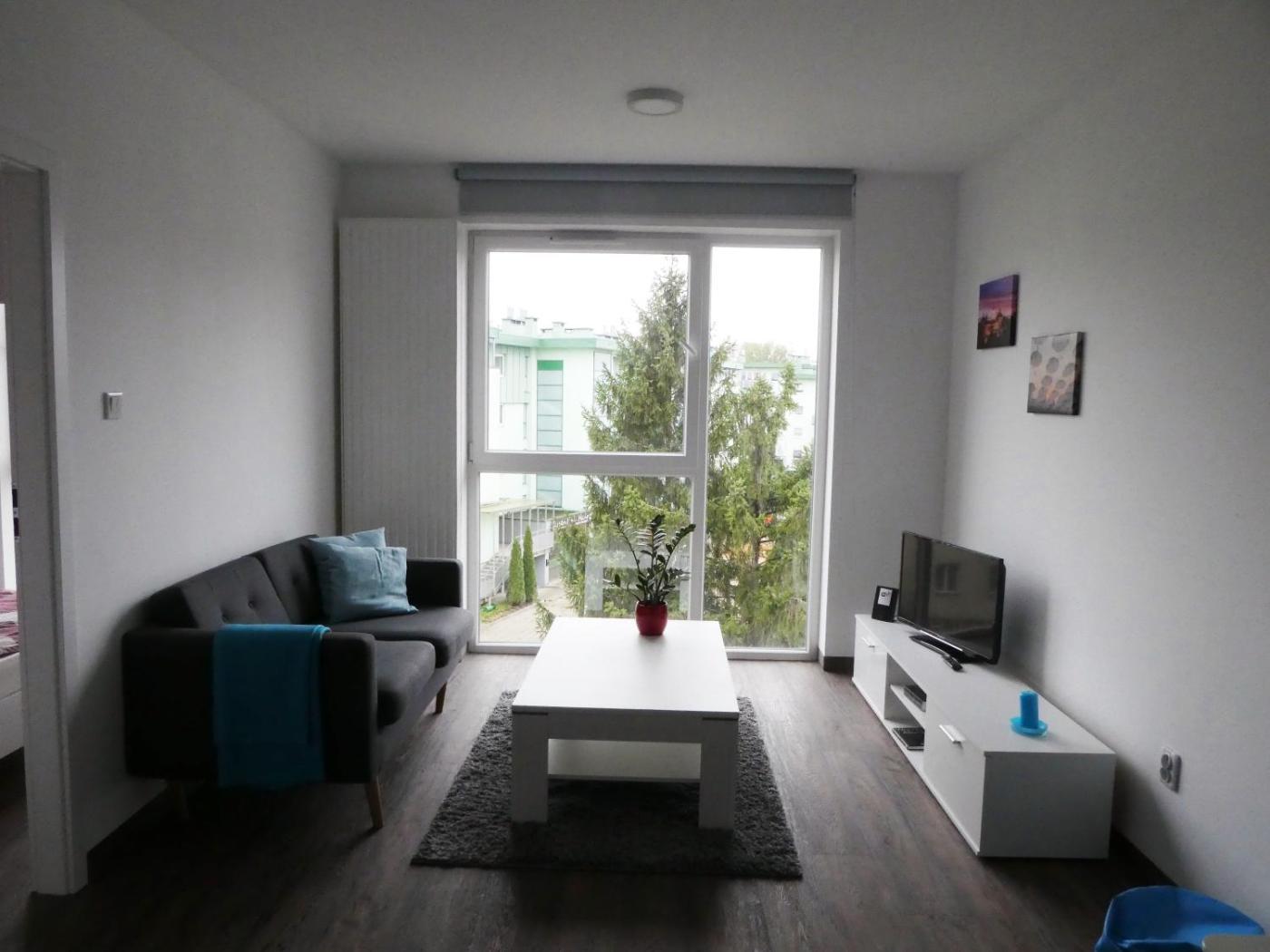 Apartament z 1 sypialnią. Boasting a private entrance, this apartment includes 2 living rooms, 1 separate bedroom and 1 bathroom with a walk-in shower and a hairdryer. In the fully equipped kitchen, guests will find a stovetop, a refrigerator, a dishwasher and kitchenware. This wheelchair accessible apartment has a washing machine, a seating area with a flat-screen TV and a roll-in shower. The unit has 2 beds. Apartament - 4 osobowy. Powierzchnia pokoju ok.: 50 mkw. ;