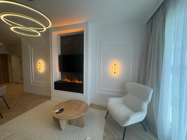Apartament z 1 sypialnią. This apartments standout feature is the fireplace. This apartment includes 1 living room, 1 separate bedroom and 1 bathroom with a walk-in shower and free toiletries. In the well-fitted kitchenette, guests will find a stovetop, a refrigerator, a dishwasher and kitchenware. The air-conditioned apartment offers a flat-screen TV with cable channels, a washing machine, soundproof walls, a tea and coffee maker as well as city views. The unit has 2 beds. Apartament - 4 osobowy. Powierzchnia pokoju ok.: 48 mkw.